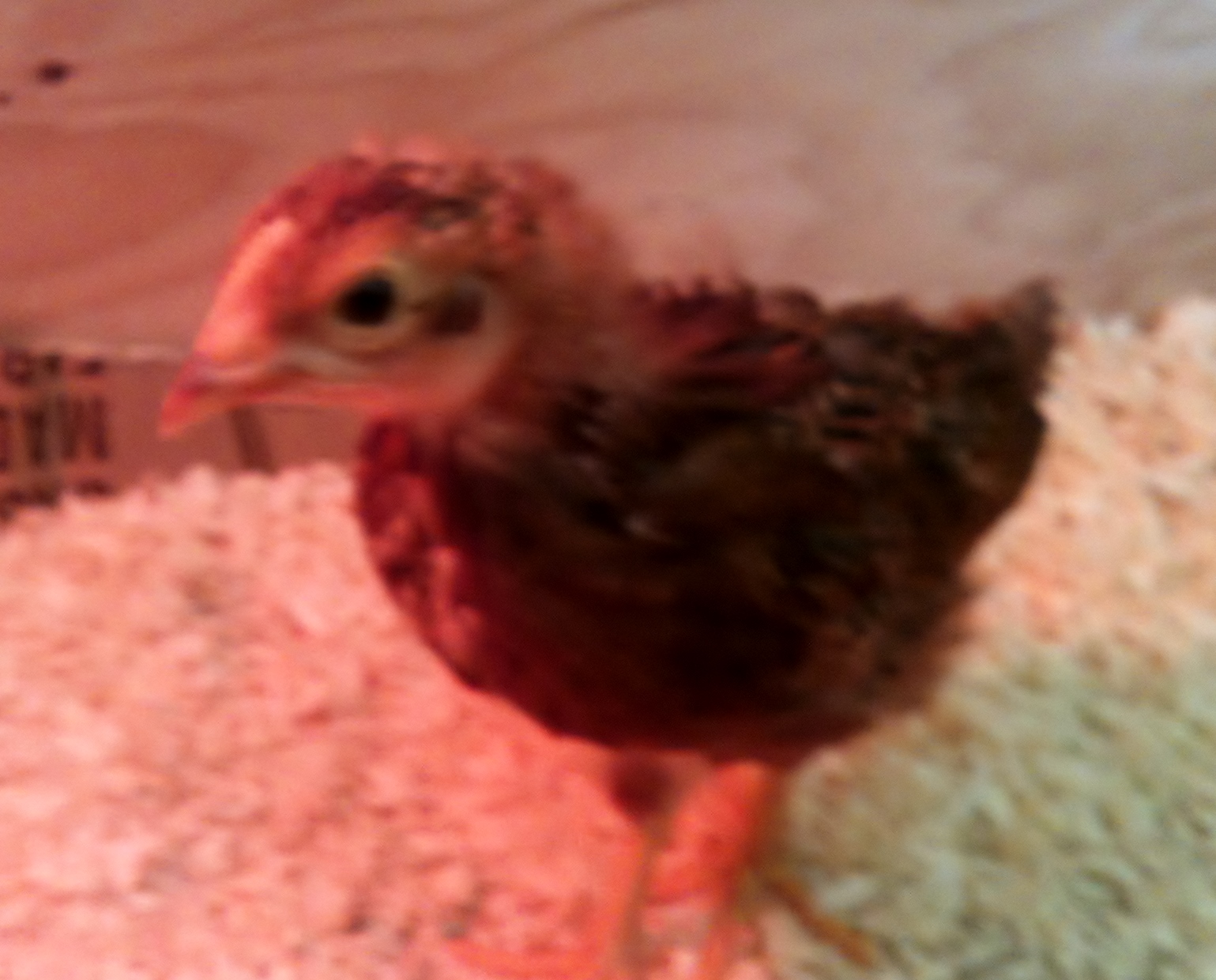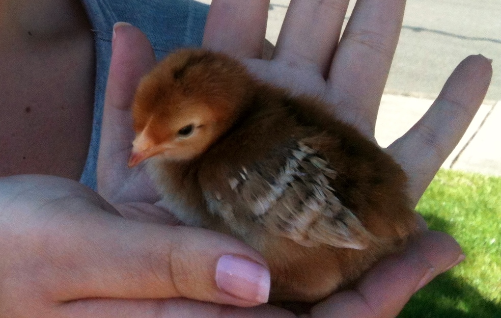 Do you remember me saying that the younger brood of 6 (now 5) do not like to be held….well, the night of the hawk made things a little different. Those little glasses of wine stood absolutely still while we picked them up to move them inside. They actually relaxed into the crevice of my arm and almost all of them closed their eyes as I walked them back to their home. They were scared, and exhausted. Huddling together, they ate, got a drink of water, then huddled together and took a good sleep. They were somewhat quiet for a little over a day, but something really cool started to emerge….we had a new little rooster. Up to that point I hadn’t noticed that we had two, except for a little “chest pounding” by Gretchen and this little one….welcome to the cockerel section, little Merlot!!