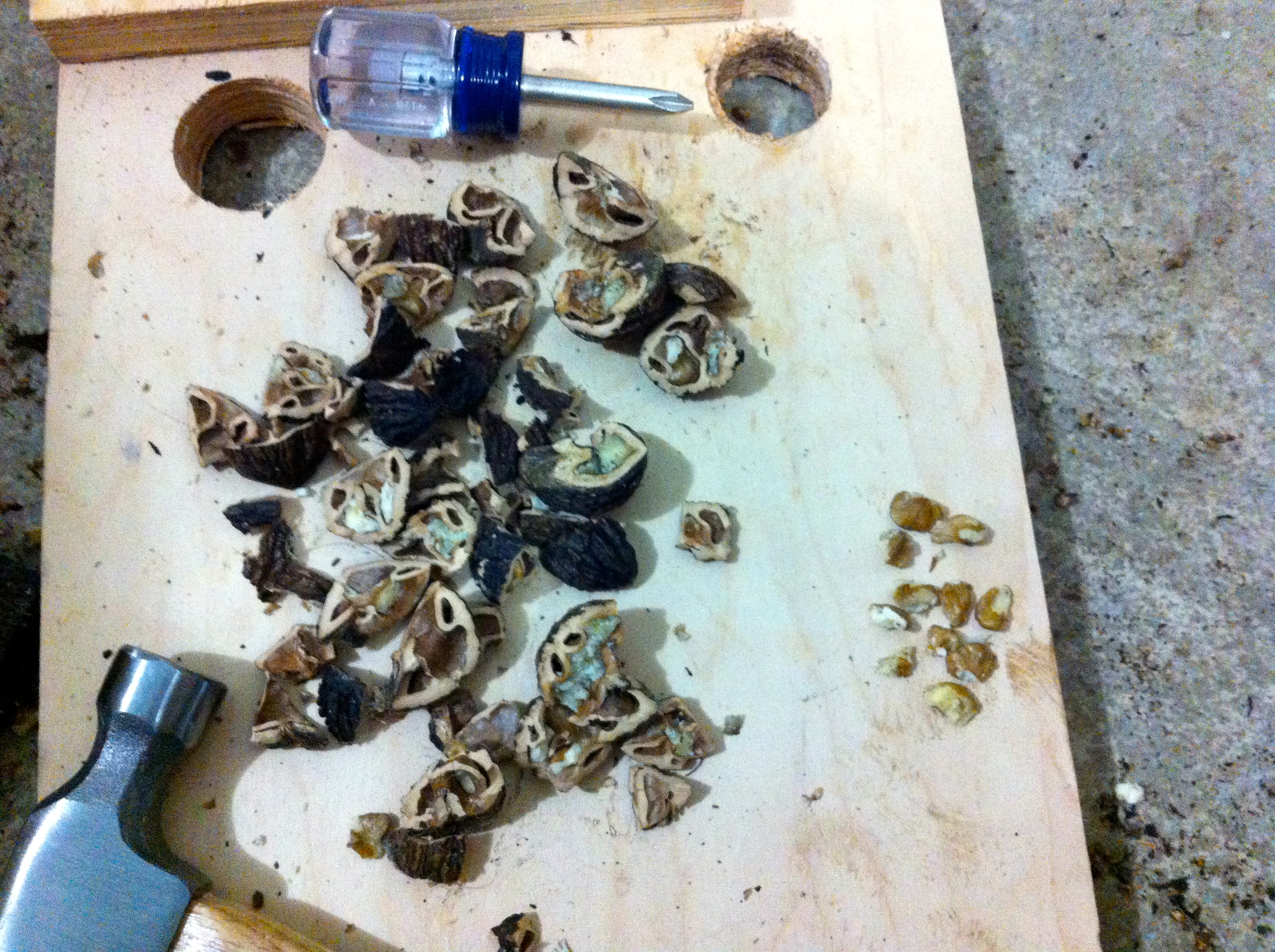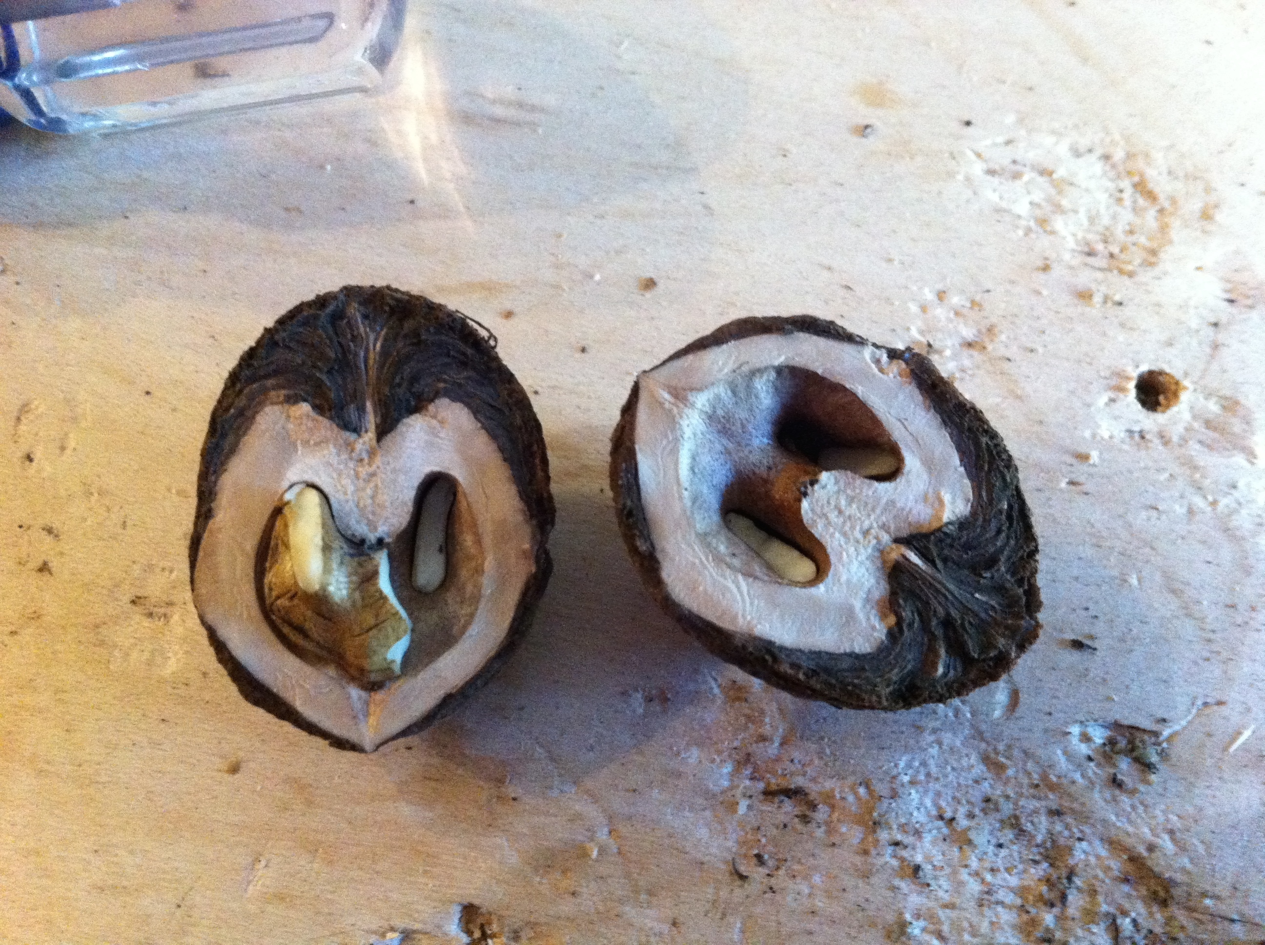 The black walnut’s chamber of secrets!! It’s a matter of digging out small pieces of nut.