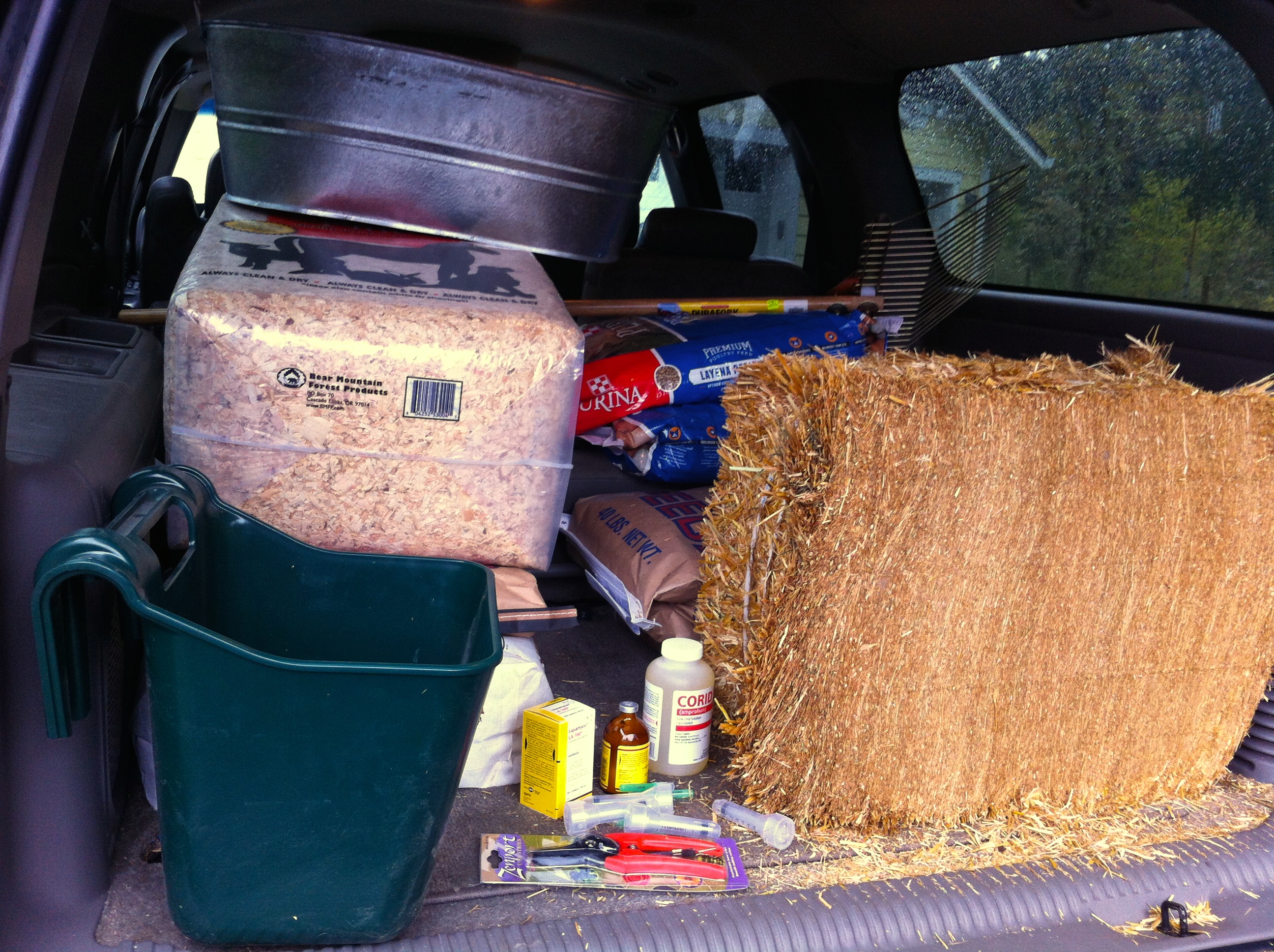 “Get goats”, they said. “They take care of themselves,” they said. Then, why does the back of my SUV look like this??? Well, I guess I needed these things anyway….right??? At least the two bags on top are for the chickens..LOL. Beyond this, we have a barn to build……pasture fencing to pull…..and a whole lot to learn!! I look forward to sharing it all with you along the way.
