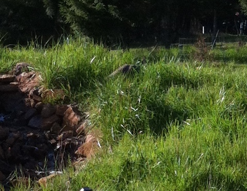 Ms. Peahen is well hidden…she has gotten as low as she can in the tall grass…..