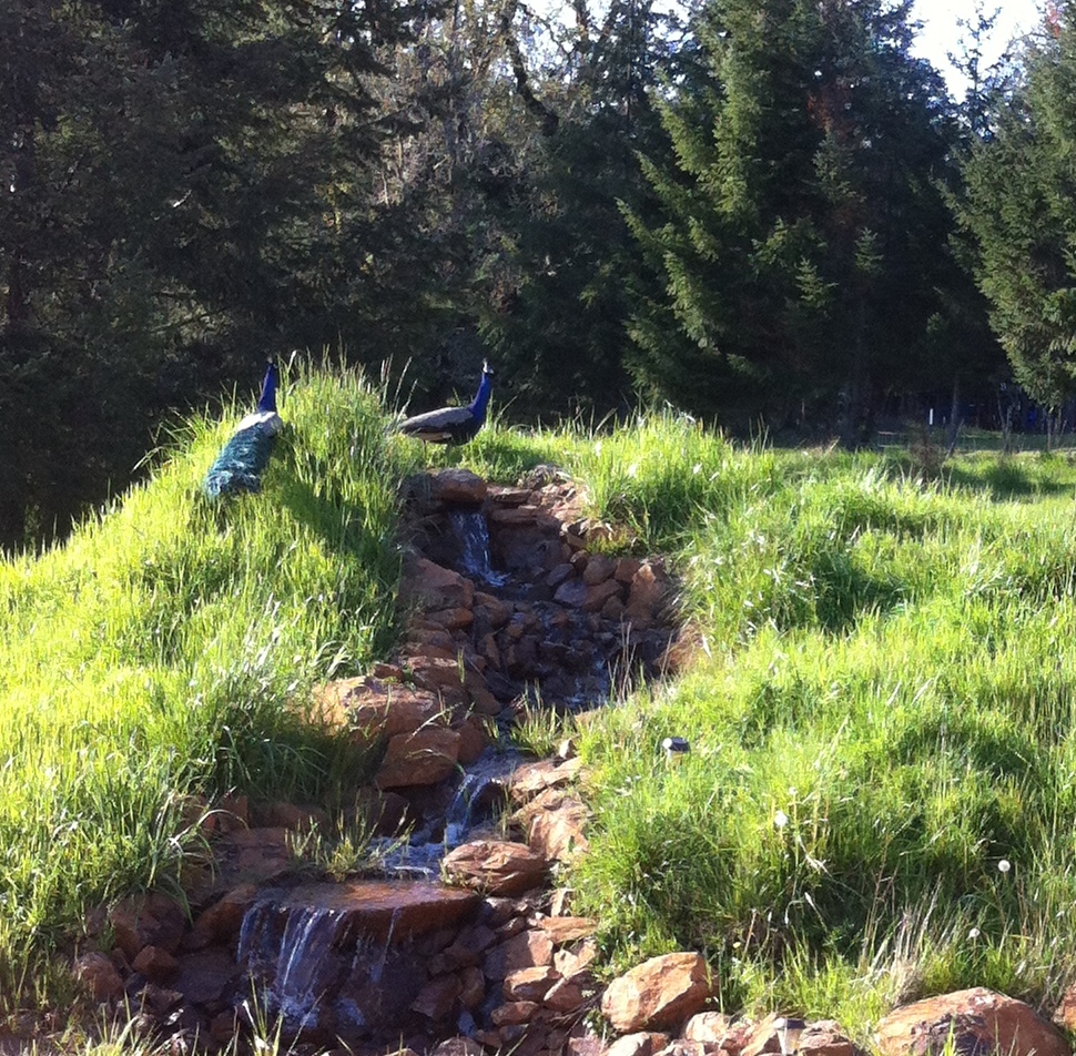 We’ve had an invasion of sorts….a far east, invasion. Exotic? … Yes …. Beautiful? …. Yes …. Loud, chicken feed loving, and hard to capture by cell phone photography? …. Yes, yes and yes!!