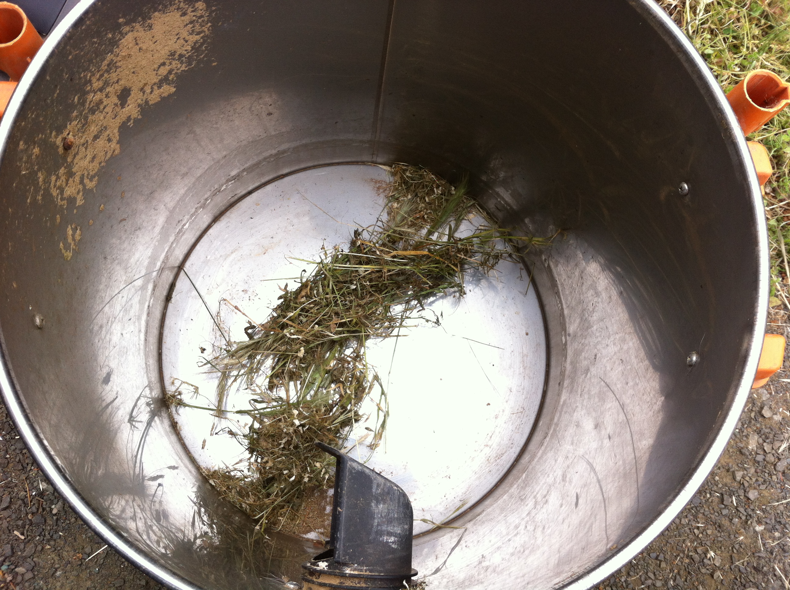 As I went, it was harder and harder to suck up the foxtails. I would shake the hose once in awhile, and it seemed to help…so I kept going. It started to become apparent that I probably had made a mistake….