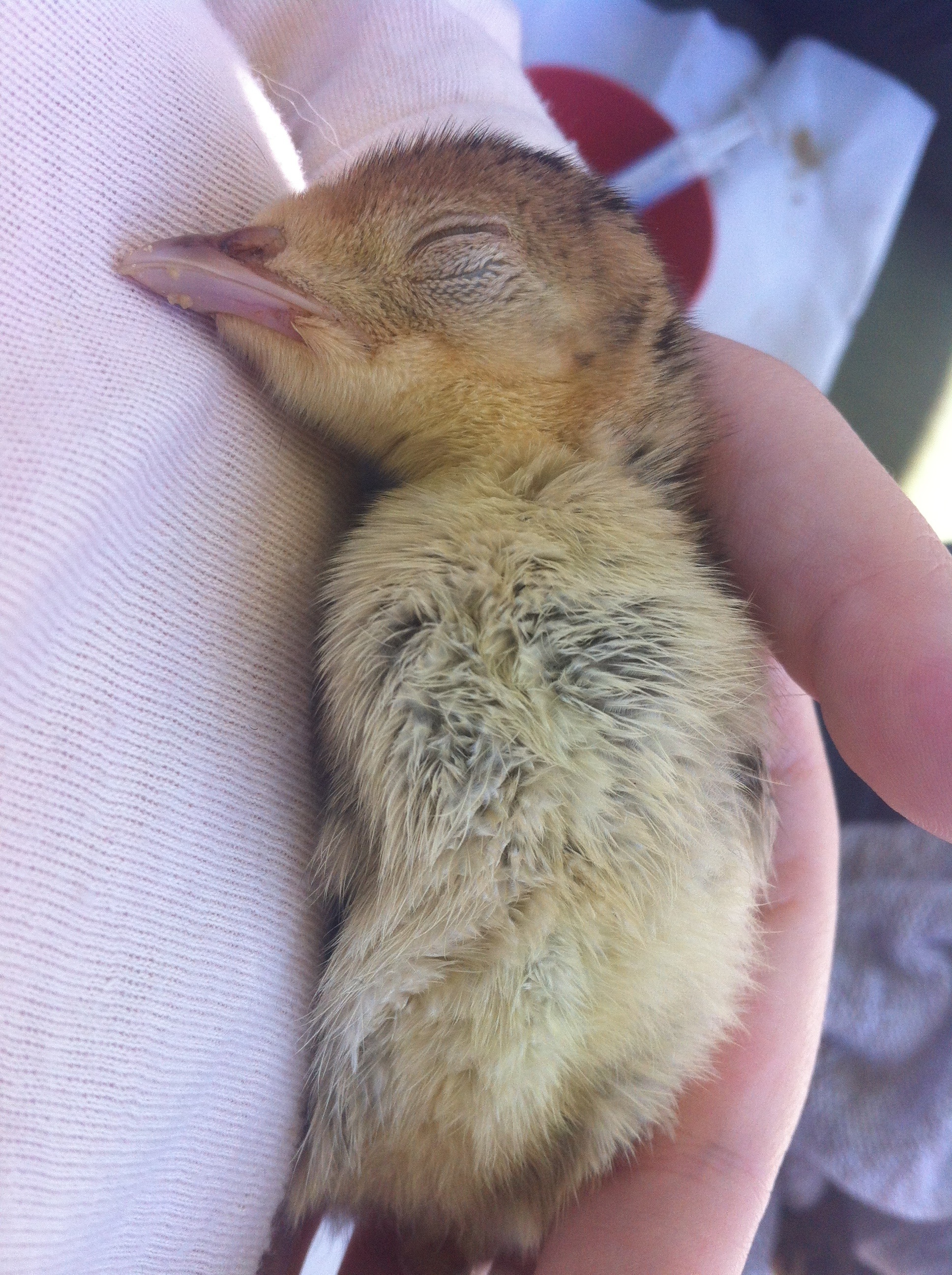 Littlest poult Bernice. Believe it or not, she is fast asleep here…she loved to cuddle in Roni’s hands.
