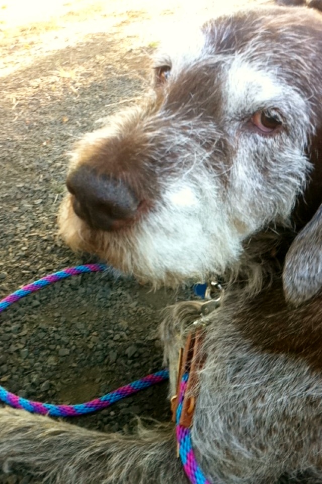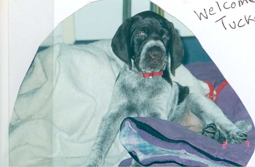 I learned a lesson this past week, the hard way! Actually, our dog, Tucker, suffered the most. Tucker is a 12 year old. German Wirehaired / German Shorthaired Pointer mix. He’s a good old boy that is all wiry….with the exception of his spots, the top of his head, and his ears…they are smooth, and short. Tucker is the last remaining pup from a litter bred by Tony’s dad’s German Shorthaired Pointer, and his Uncle’s German Wirehaired Pointer. He is a friendly, rambunctious, goofy, chase-that-ball-till-you-drop, great dog and buddy. Tony brought him home one morning when he was just 7 weeks old, and sat him on top of my son while he slept. Will woke up to that little scrunchy face staring down at him….never have you seen a happier little boy than that moment. I’ll never forget it!
